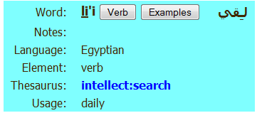 This page explains how to use the word view of the Egyptian Arabic Dictionary. You can get to this view by clicking on a word in one of the other views.