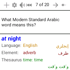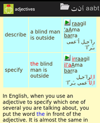The android app is more than just a dictionary: it is an extensive set of learning tools for students of Egyptian Arabic. It contains: