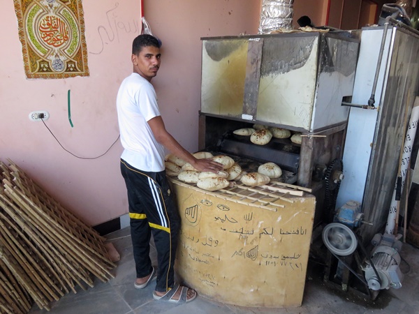 These days, most people buy their bread from a furn فـُرن - a small bakery. Most bakeries specialise in one type on bread: one makes 'abyaD أبيـَض (white) flatbreads, another makes bunni بـُنّي (brown). The brown bread is covered on both sides with a thin layer of radda ر َدّ َة (bran)