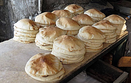 The Arabic word for bread is Kubz خـُبز, derived from the verb Kabaz خـَبـَز (bake). Arabs generally are not big bread eaters, but for Egyptians it's a completely different story: they eat more bread per capita than any other country in the world. Bread is so important that the Egyptian word for it is Aeesh عيش, which also means life.